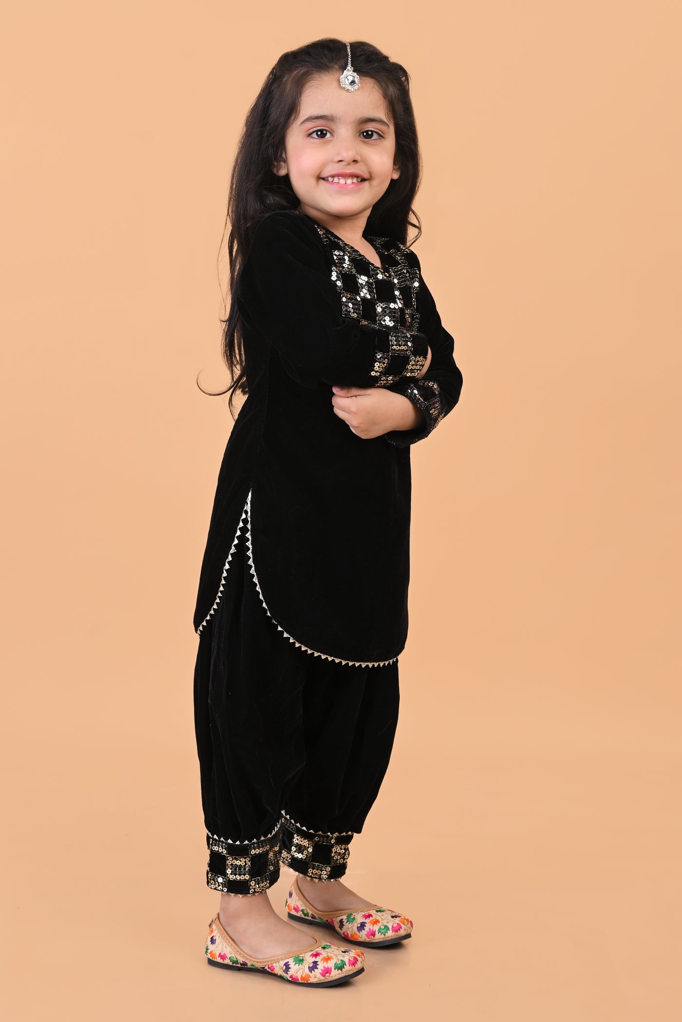 Full Sleeves velvet kurti with afghani salwar -Black - 3-4y