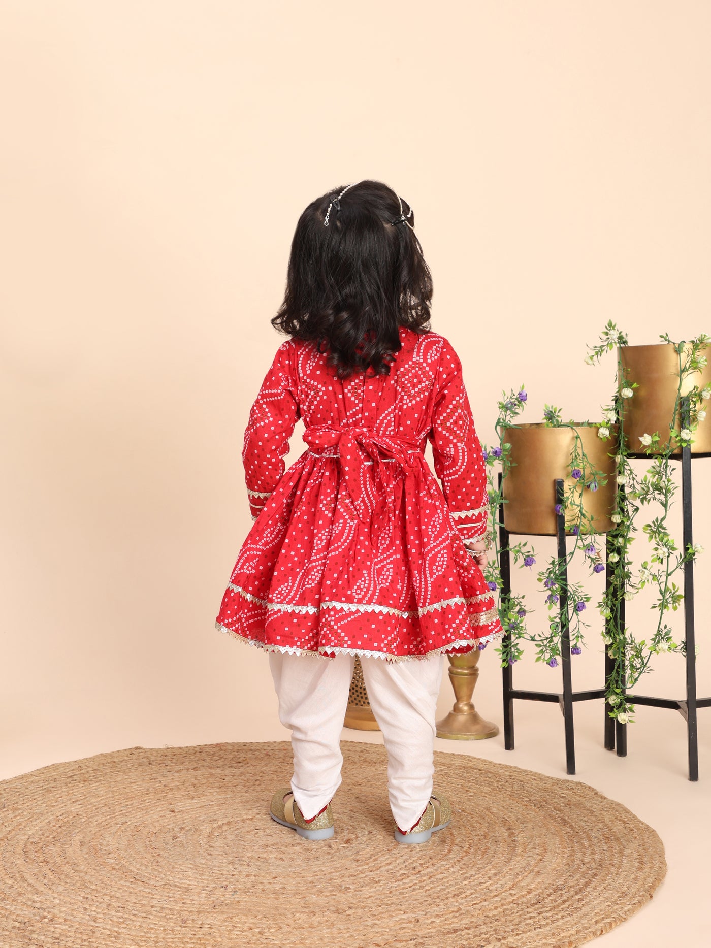Cotton kurti and sharara set - Red - 5-6y